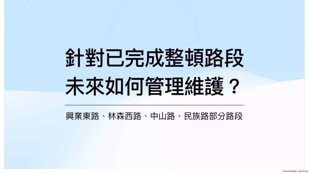由於效果顯著,113年擴充至600萬元加強整頓民族路,今年同樣編列600萬整頓民族路(嘉雄陸橋至新榮路段)。