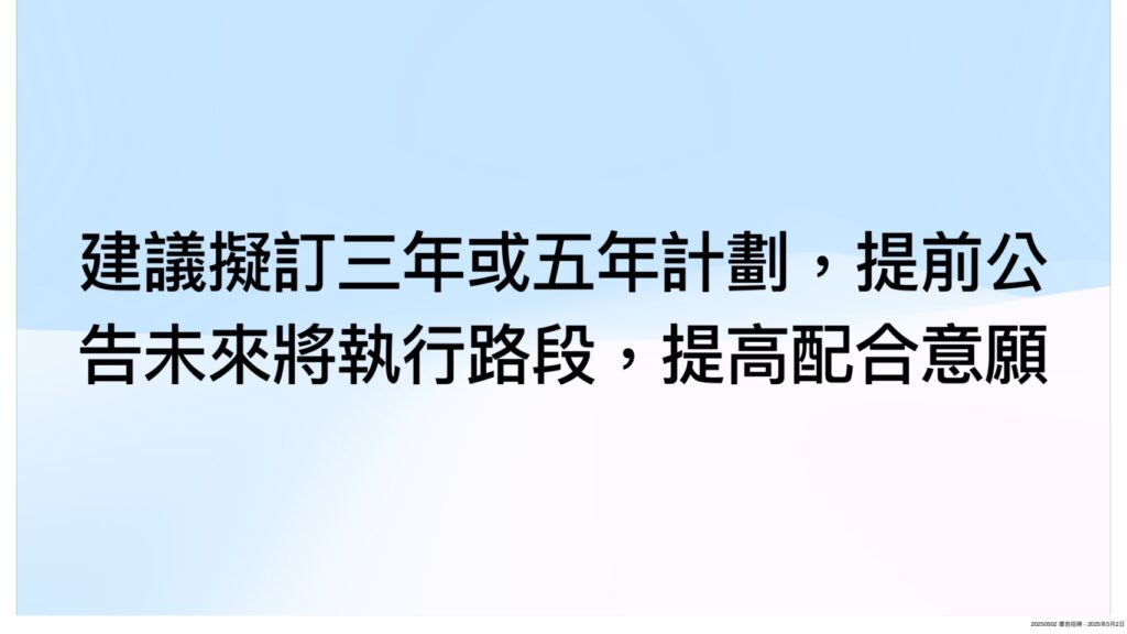 此外,過去曾有店家新設招牌後,馬上遇到整頓招牌專案要求改善,抱怨要多花一筆錢,因此光宏也建議,招牌整頓拆除預算既已常態化編列,不妨可以訂定期程及目標,預先公告三年、五年內欲執行改善路段,讓市民可以提前配合,讓改善專案更接地氣。