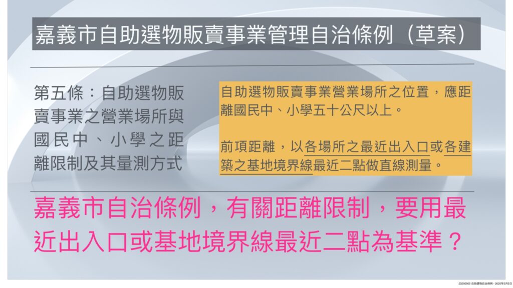 未明確定義營業場所距離國中小測量方式 光宏要求退回自助選物販賣管理自治條例草案-2025/05/05