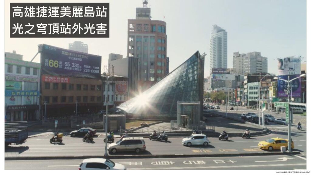光宏表示,過去包括高雄捷運美麗島站外光之穹頂光害問題,民眾告上法院,法院判決敗訴,市府協助民眾加裝窗簾、隔熱紙才解決。台北大巨蛋竣工後屋頂反光,也讓對面光復國小43間教室加裝窗簾才不致影響授課。新店HTC大樓玻璃反光影響鄰近社區,最後每戶賠償五萬元才平息眾怒。