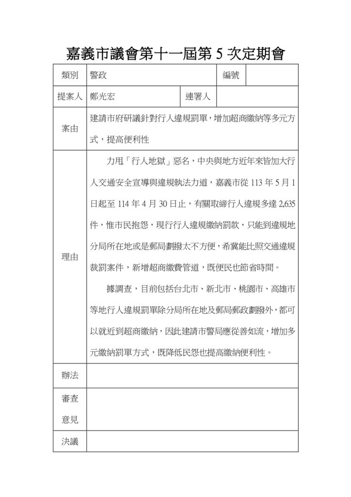 建請市府研議行人違規多元繳納